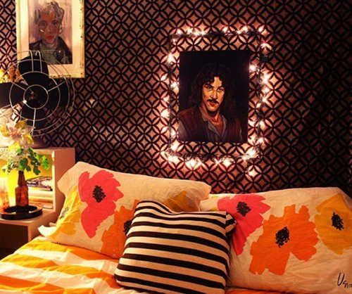 柔软舒适的床,配合着床头的油画构造出了独特的文艺气息。