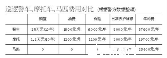 目前警方传统的巡逻方式有:步行、骑摩托车、电动车以及携警犬等。这名内部人士称,从巡逻的角度考虑,马在速度、耐力、使用年限、灵活性、饲养费用等方面都有得天独厚的优势。