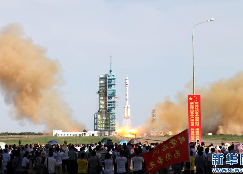 6月11日17时38分许,长征二号F遥十运载火箭在酒泉卫星发射中心中国载人航天发射场顺利点火起飞,将神舟十号载人飞船发射升空。图为神舟十号飞船发射瞬间。张宝印 摄 (图片来源:新华网)