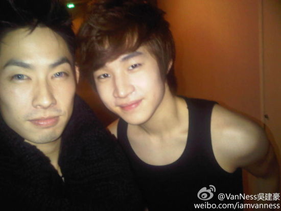 吴建豪于今日凌晨在微博晒出一张与SJ-M成员Henry的合影,两大帅哥相聚自然吸引了不少眼球。两人或是在节目现场相遇,吴建豪也为Henry的新专辑鼓劲加油,俨然已成为好哥们。