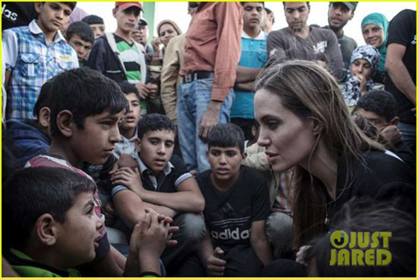 在6月20日的“世界难民日”到来之际,好莱坞巨星安吉丽娜.朱莉深入约旦边境,探访了聚集在那里的叙利亚难民。她表示,中东的战争可能会导致今年年底一半的国民逃离叙利亚,这是与人道主义精神相违背的。她还表示,她此次探访是为了呼吁世界各国关注叙利亚难民,并且帮助约旦等邻近国家,使其免受战争影响。